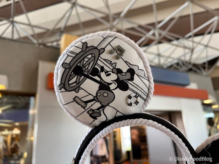 As with many of Disney’s merch lines, this collection included a pair of ears. These have Mickey Mouse as Steamboat Willie front and center. The Mickey Mouse Steamboat Willie Ear Headband for Adults debuted on shopDisney along with the rest of the 20s Decades Collection earlier this week, but we just found these ears at Disney World for the first time today!
