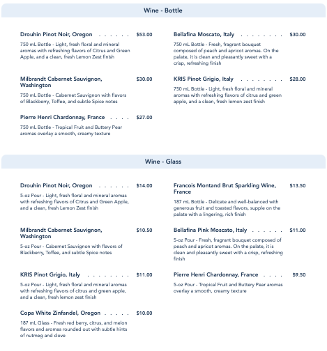 In terms of adult drinks, there are only a couple of cocktails available in the form of a Bloody Mary and a Hard Seltzer.