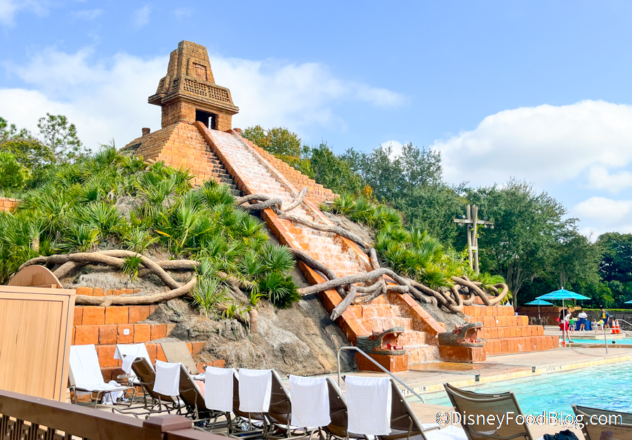 Coronado Springs is also home to the Dig Site Pool which features a massive 50-foot replica of a Mayan pyramid! If you prefer more mature theming or are looking for a more upscale stay without blowing your budget, you can stay here for around $300 per night on average and take advantage of their many amenities. The Grand Destino Tower, which opened in 2019, has plenty of space, and you can see the room tour we did right after its opening here!