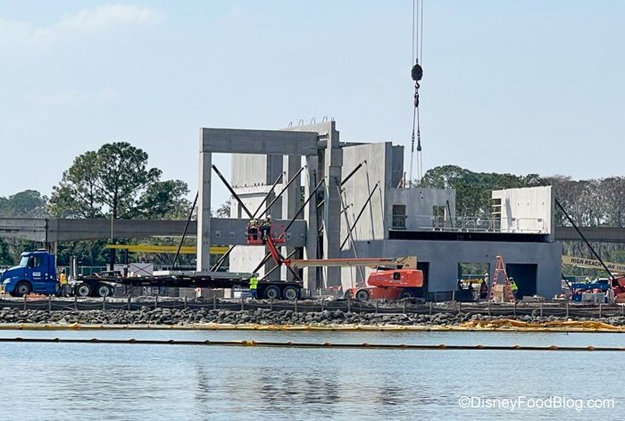 The big construction project over at the Polynesian is for the new Disney Vacation Club Villas and we’ve seen a LOT of progress happening there. The last time we checked, we saw the first of a foundation being put down on the construction site: