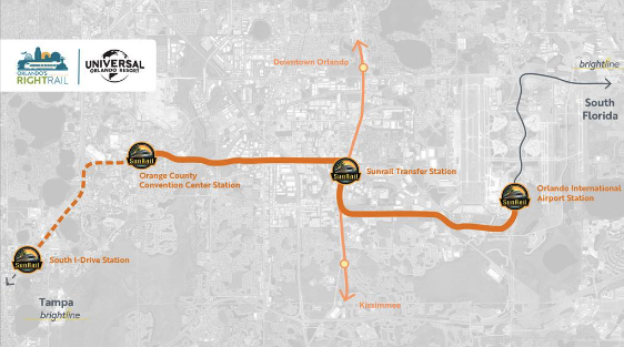 And work continues on the path the train will then take through Orlando. The Sunshine Corridor plan is the current strategy. It would have Brightline share a corridor with the existing SunRail service, and it would make stops (potentially) at the Orange County Convention Center and South International Drive. A potential stop “near” Disney World has also been discussed. The plan is then to eventually connect with Tampa (if possible).