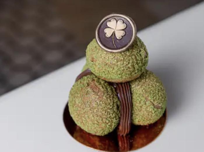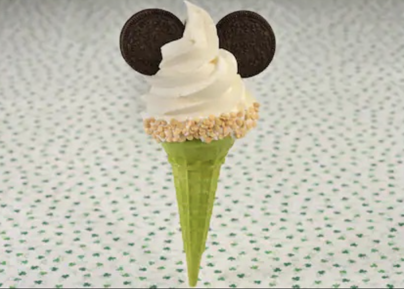 - Mickey Shamrock Beignet: Mickey-shaped beignet, chocolate-mint ganache, milkshake pipette, and shamrock décor (New)