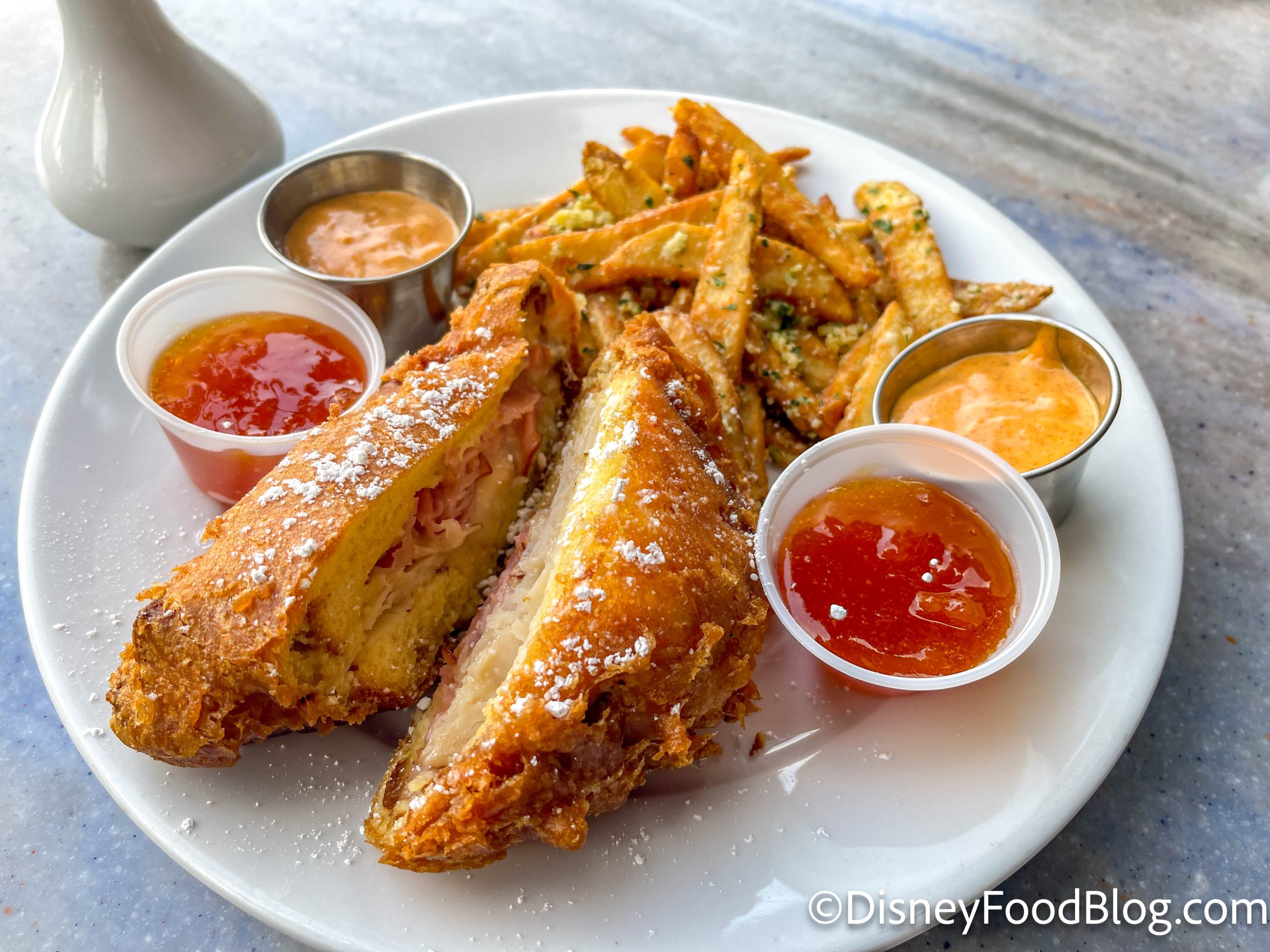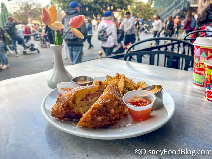 For entrees, they’ve got the Red Wine Braised Short Rib or Roasted Chicken. But the real star of the show is the Monte Cristo — they’re famous for the sandwich, and it’s a classic Disneyland treat!