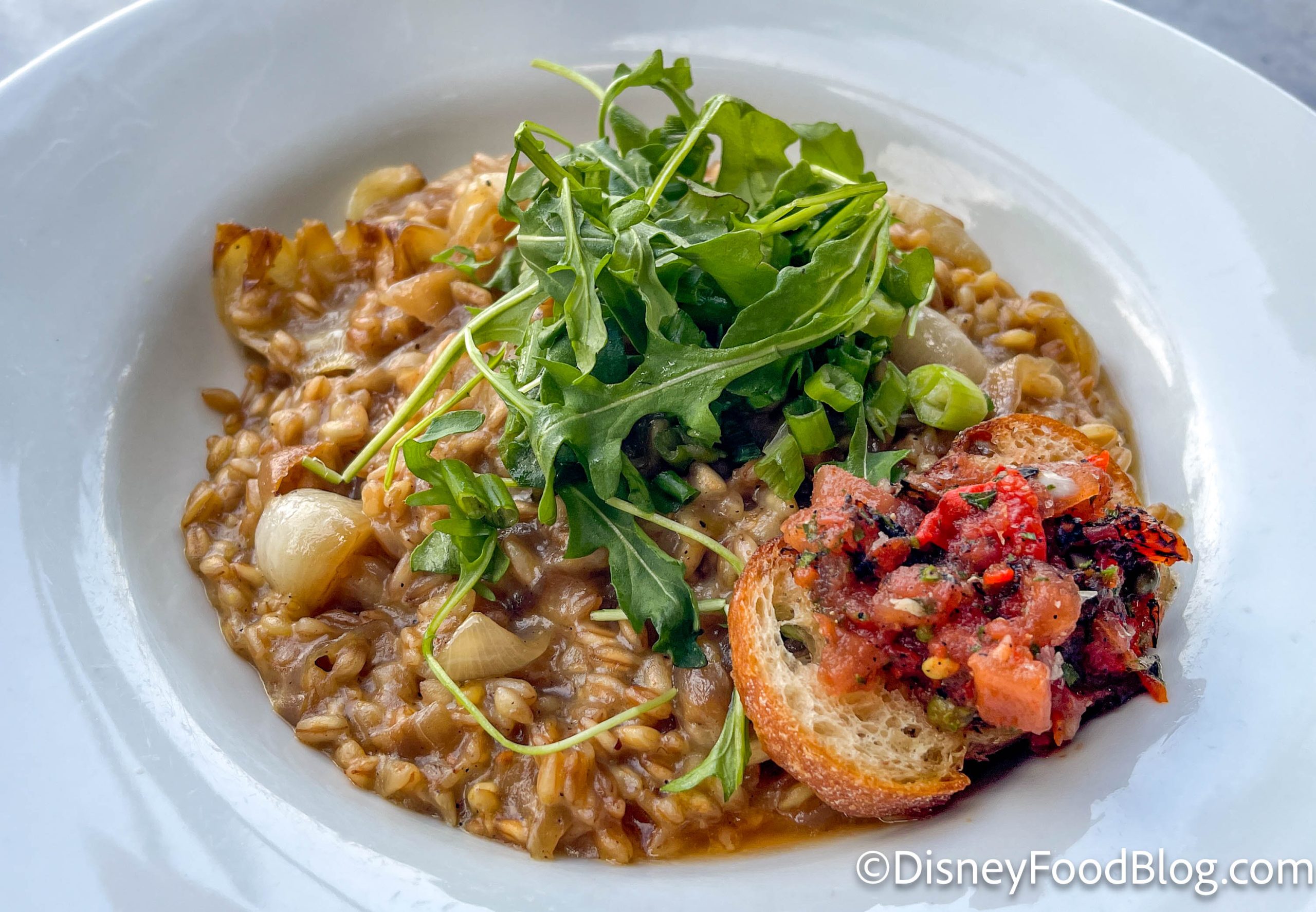 The other thing we tried was the French Onion Farro Risotto for $21. This is on the list of plant-based eats and it’s made with Seven Onion, lemon arugula salad, and smoked tomato crostini. YUM!