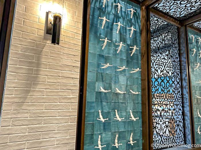 In terms of pure design, the space is beautiful. The decor is bright and colorful, with aqua and gold colors used throughout. Plus, the space has an open and airy vibe.