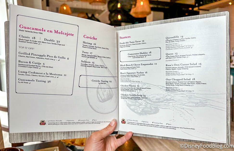First, we’ll talk about the menu. Rosa Mexicano serves breakfast, lunch, and dinner, just be sure to check what’s available during your visit. You can see menu details for all 3 meals here, but for this post, we’ll focus on dinner since that’s when we visited!