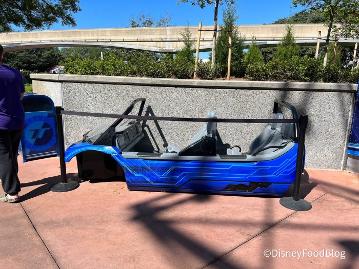 We saw this Test Track ride vehicle sitting outside the ride. It’s normally there as a tester vehicle, but according to the Cast Member, it will be moved soon due to being a safety hazard and guests using it as extra seating.