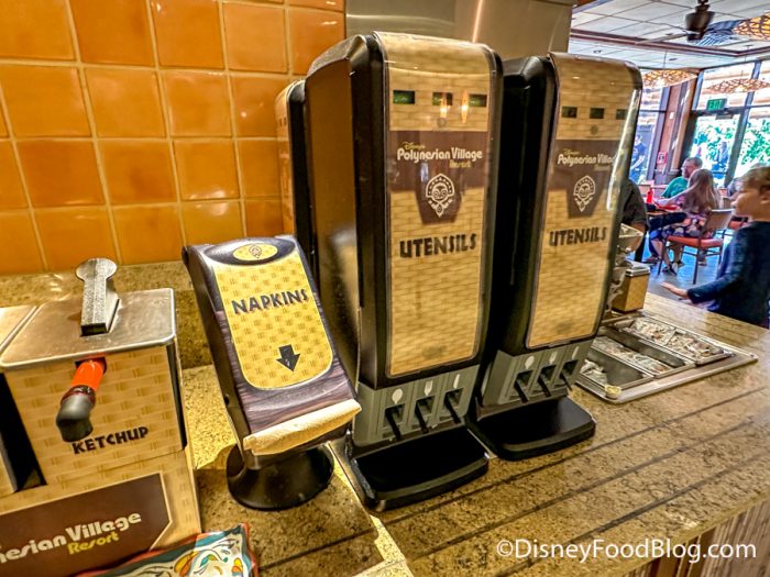 Once you’ve placed your order, you’ll find a self-serve section to grab what you need for your meal, like utensils…