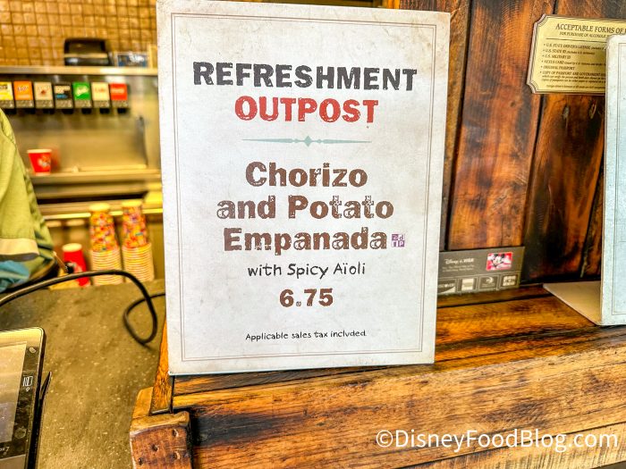 This is DFB, so we’re gonna start with food (of course). Over at Refreshment Outpost, we noticed that the Chorizo & Potato Empanada is currently available.