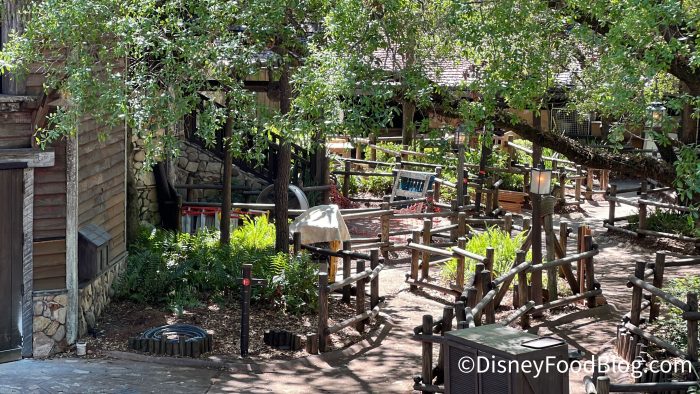 We’ve seen work happening to the ride’s rails at the front moat area that plunges under the walkway, but changes to the ride itself here aren’t as apparent. We’re eager to see if there’s anything added here for the theming once the water tower is put into place.