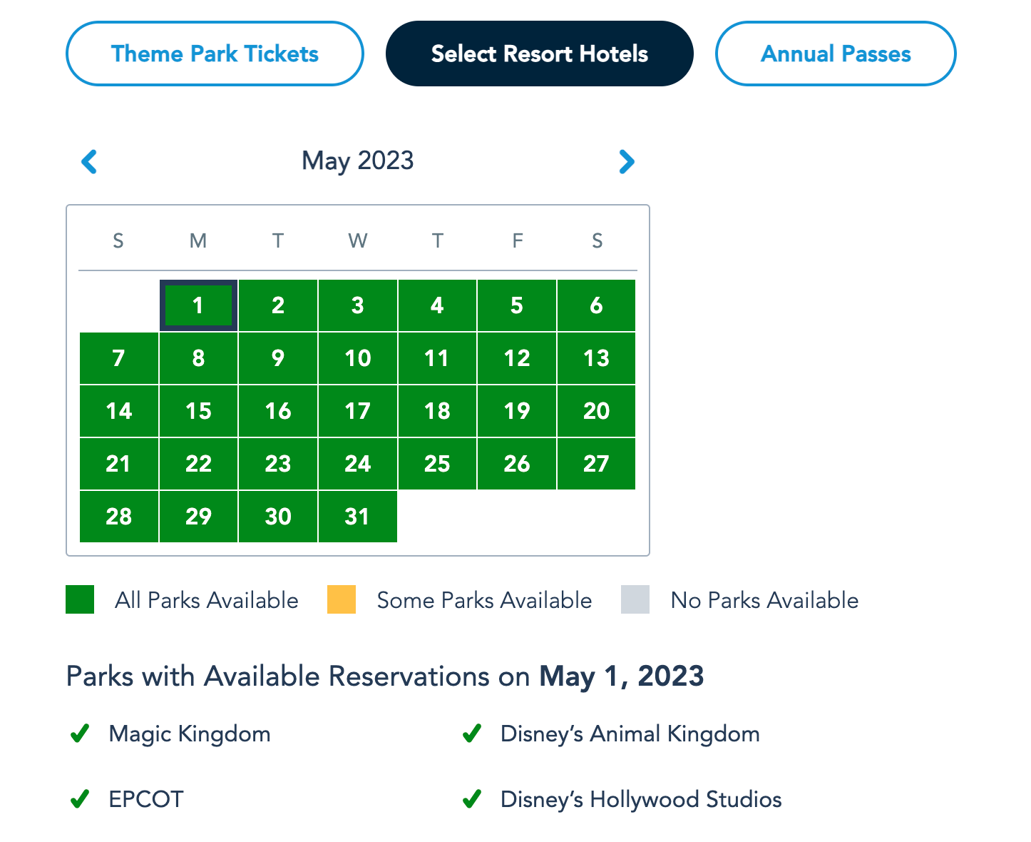 Currently, Disney Park Passes are sold out for Hollywood Studios for Annual Passholders, including all pass types. They’re still available at the time of publishing for ticket holders and resort guests.