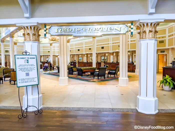 The check-in area is pretty grand! Just look at those high ceilings and architecture. Do you spot the hidden Mickeys?