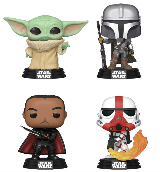 When we did this, we found some pretty cool Funko Pop! options, like this Funko Pop! Star Wars: Mandalorian 4 Pack for 52% off!