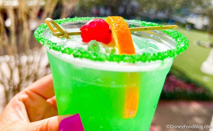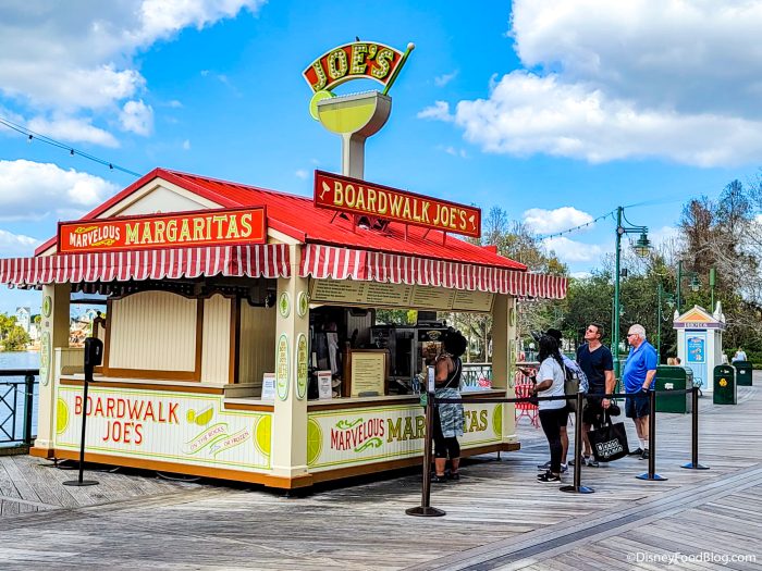 BoardWalk Joe’s is known for ONE thing: “Marvelous Margaritas!” For a relatively small kiosk, there is a surprising variety of flavorful margaritas available — and sometimes you’ll happen upon a seasonal concoction! A selection of snacks such as pretzels and nachos are also available. Non-alcoholic smoothies (including one made with Dole Whip!) are also on offer.