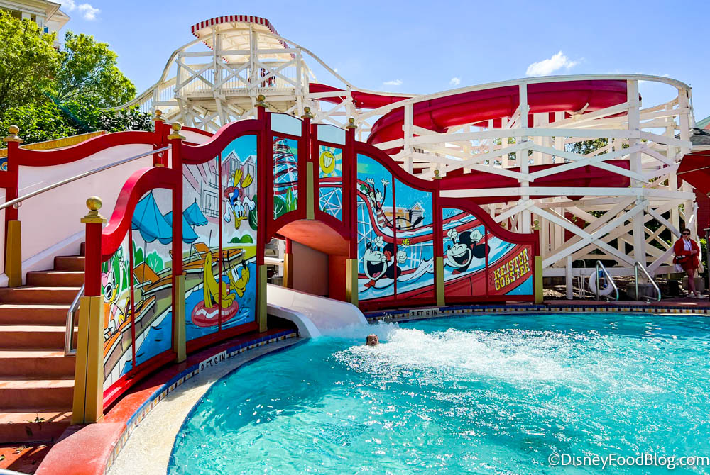 Mickey, Minnie, and Friends enjoy a pool adventure with you on this 200-foot-long slide.