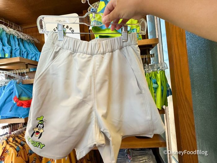 These gray-beige shorts feature a small image of Goofy on the leg.
