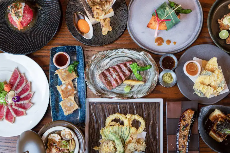 Some highlights from the sushi bar include the Kobore Sushi, Tokyo Negi Roll, Funamori, and The Monster Roll.