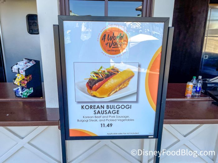 It’s made with Korean Beef and Pork Sausage, Bulgogi Steak, and Pickled Veggies. The sausage costs $11.49.