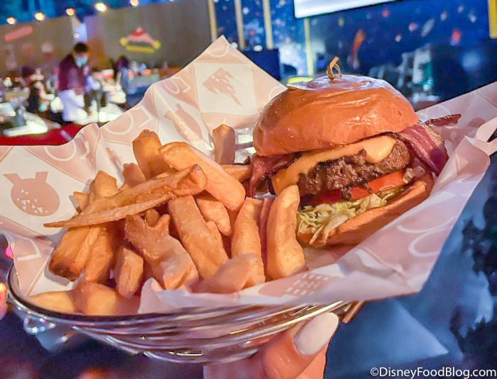 The food here is pretty simple — burgers and fries, salads, and some pasta dishes. It’s nothing stellar, but that food isn’t the main draw. You’re coming here for the theming and the experience.