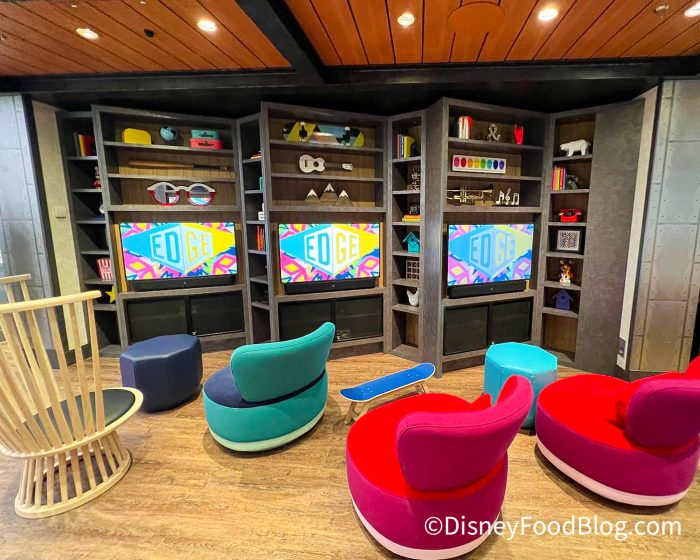 On the Disney Wish, tweens and teens can also enjoy Hideaway, a unique “third teen/tween space” adjacent to Vibe. It’s a sort of flex space that can be opened to the teen club or closed off for tween-only events.