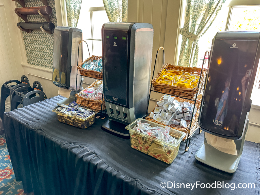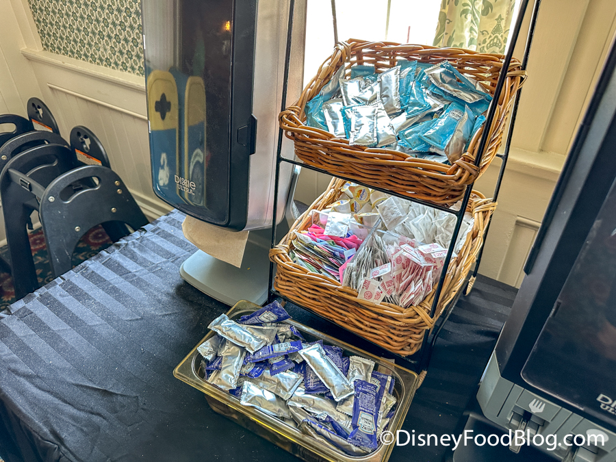 Once you get your food, there are self-serve stations for utensils, napkins, and condiments.