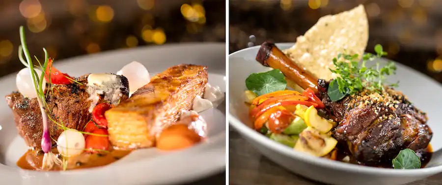 And now let’s talk about dessert. Disney made it very clear that the FAMOUS Grapefruit Cake is not going anywhere so don’t stress out about that one! But back in late April, a new dessert did hit the menu — Brûléed Champagne Sabayon — Minted Strawberries, Lemon-Pine Nut Biscotti for $13.