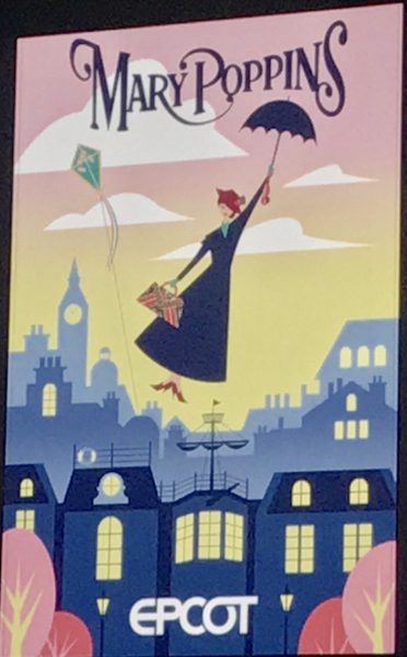 In case you’re not familiar with it, EPCOT’s Odyssey building was home to the EPCOT Experience, which overtook its seating area to show off the expansive projects that were to come. Initially, the Mary Poppins attraction was included in a brief section of the film that accompanied the UK Pavilion as the project spanned each affected section of the park including Guardians of the Galaxy: Cosmic Rewind and introduced us to the icons and new names given to each “neighborhood” of EPCOT in World Celebration, World Discovery, World Nature and World Showcase.