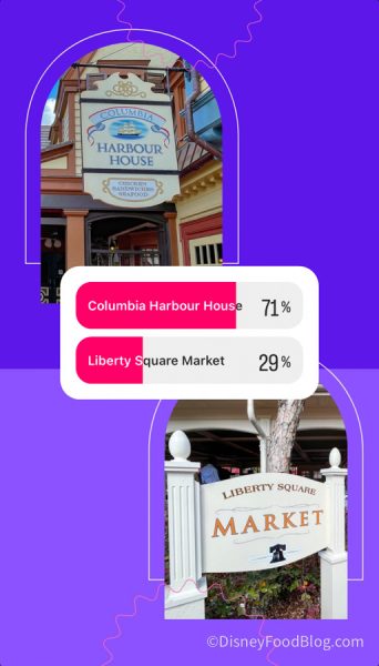 Back in Magic Kingdom, these two colonial restaurants are going head to head: Columbia Harbour House and Liberty Square Market.
