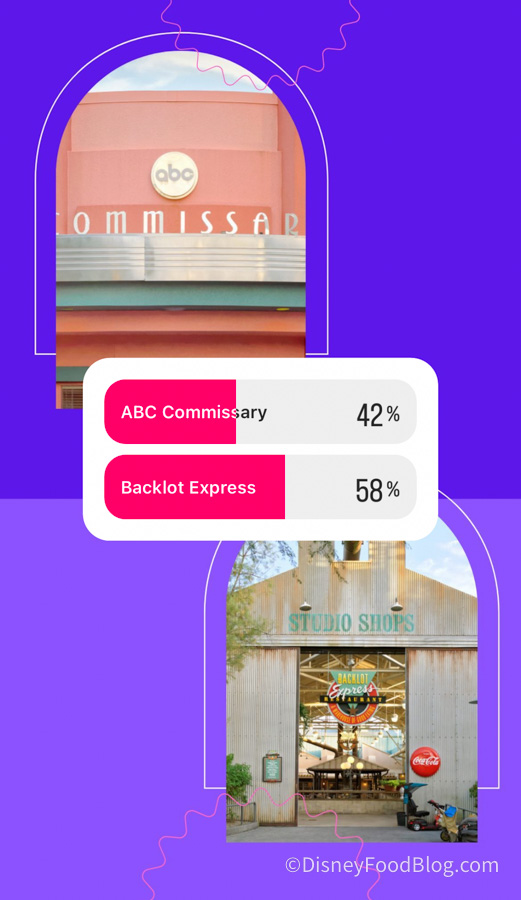 Hot on the set! These two entertainment-oriented spots are battling it out: ABC Commissary versus Backlot Express.