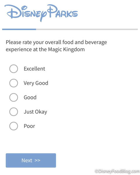 One of the questions asked about the overall food and beverage experience in Magic Kingdom. The newest snack spot we saw added to Magic Kingdom was Energy Bytes (the stand by TRON Lightcycle / Run), but perhaps Disney is looking to see if guests are satisfied with the overall experience or if new snacks/restaurants (or other dining changes) may be needed.