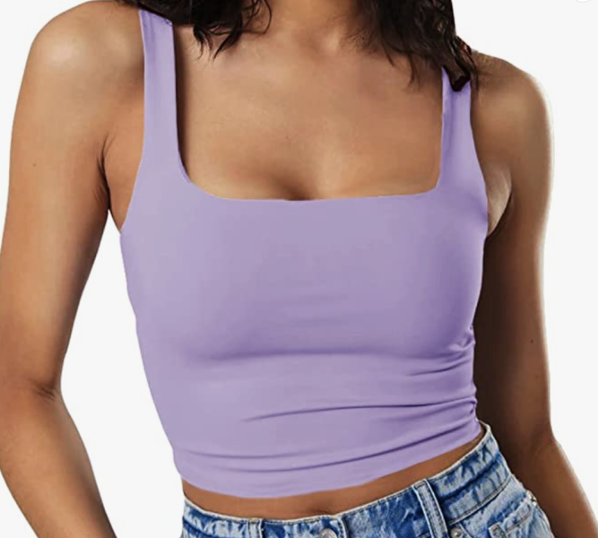 If you’re looking to go under the sea, we have the perfect look for you! First, we have this comfy but cute Women’s Sleeveless Strappy Tank Top in the perfect shade of purple to match Ariel’s seashells.