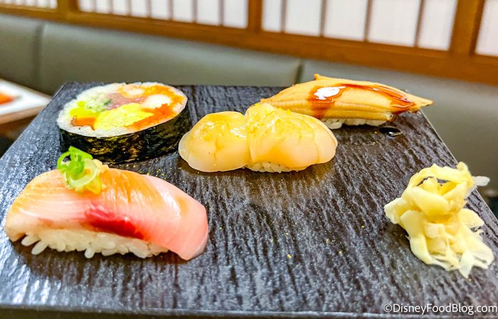 Takumi-Tei is a signature restaurant in EPCOT’s Japan pavilion. This place is very pricey but we’ve eaten quite possibly one of the BEST plates of sushi ever here.