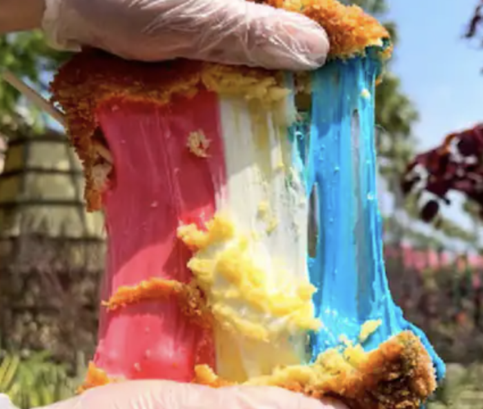 - Fourth of July Mozzarella Dog: Red, white, and blue mozzarella cheese, dipped in batter, rolled in panko crumbs, fried, rolled in sugar, and served with a side of sriracha dipping sauce (New)