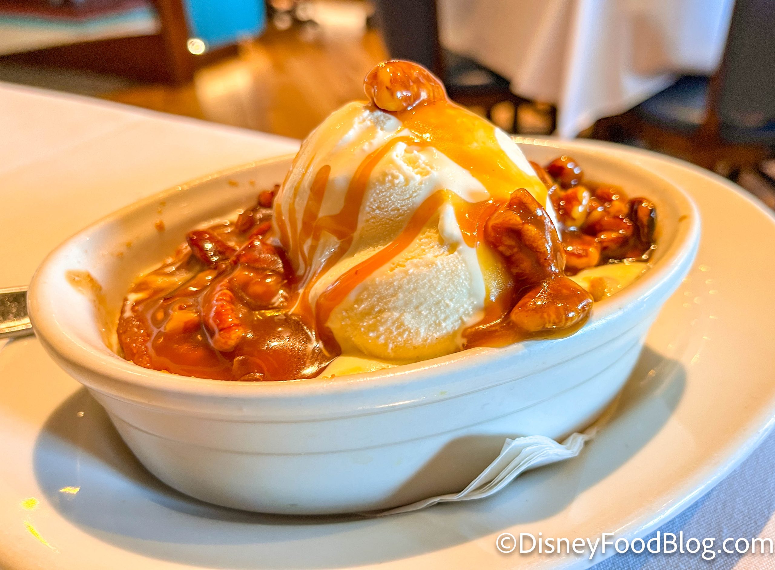 ‘Ohana is probably one of the most popular and iconic bread pudding options — so it may be the first restaurant you think of when Disney World bread pudding is brought up in a conversation. (Don’t be shocked, Disney World bread pudding comes up in conversations more than you realize. What? Is that just us? What do you talk about around your water cooler?)
