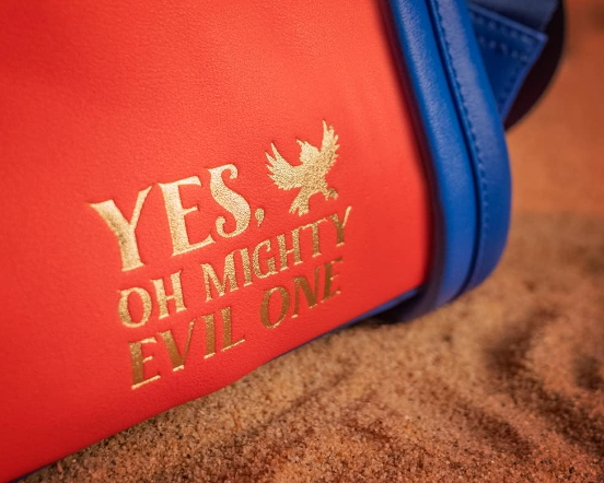 On the back, you can find one of Iago’s quotes from the movie, when he said to Jafar, “Yes, oh mighty evil one.” Get the bag for 10% off on Amazon!