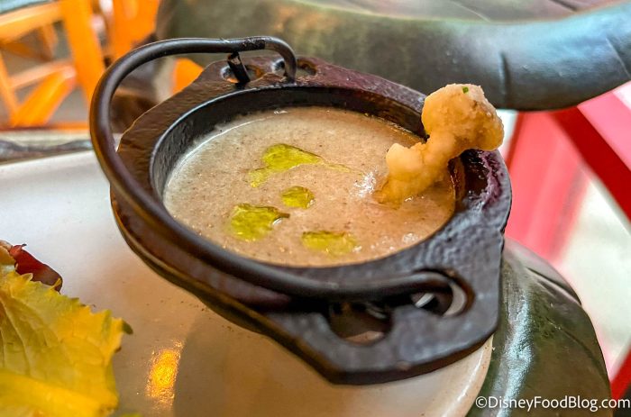 The Wild Mushroom Bisque is a tasty soup with crispy mushrooms inside. It’s super rich and creamy and there’s a little fried mushroom on top and an olive oil drizzle.