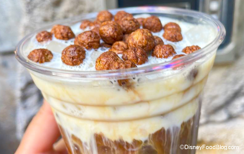 This drink was originally over in Disneyland and finally arrived in Disney World in 2022 at Kat Saka’s Kettle. This drink is Joffrey’s Cold Brew topped with Sweet Cream Cheese and Chocolate Puffs. While it may sound simple, it’s a big favorite of ours and many of our readers.