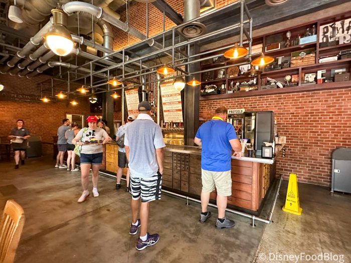 Inside is a bar area where you order your food and drinks with a cast member. When we visited, the cast members were super friendly, fast, and ready to help if you asked their opinion on a few flavors or menu options.