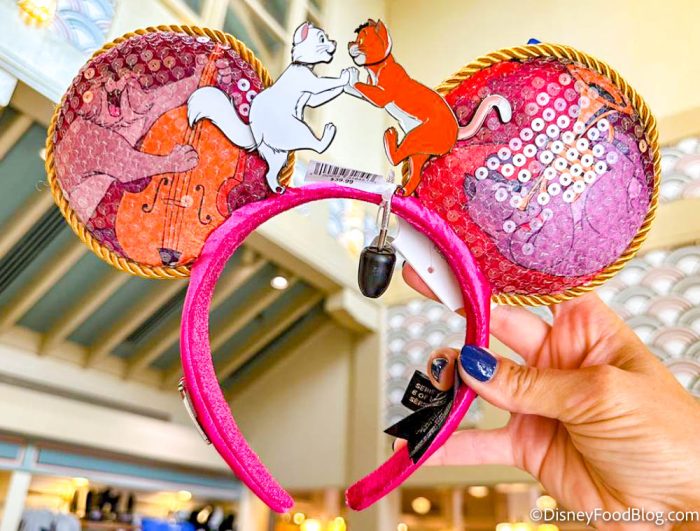 The newest ear headband is this Aristocats headband! It features sequin-covered images of Scat Cat and Billy Boss on the front with Marie, Toulouse, and Berlioz on the back.