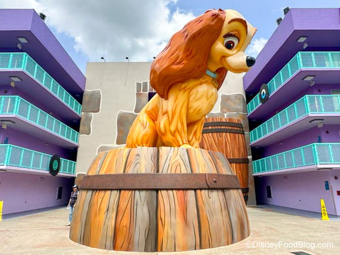 Pop Century made our romance list because of its access to the Disney Skyliner, and we also love the adorable Lady and the Tramp icon, which has us singing Bella Notte.