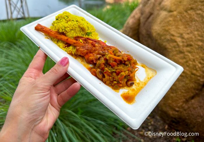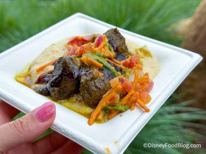 The Kenyan Coffee Barbecued Beef Tenderloin with Sweet Potato-Corn Mealie Pap and Kachumbari Slaw for $6.50 is gluten and wheat-allergy-friendly. This year, the beef was seasoned quite a bit, but we didn’t get a lot of the coffee flavor. In fact, we found it a bit sweet, which we didn’t expect.