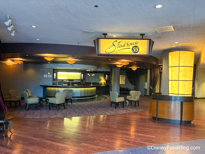 According to Scott Gustin via Twitter, Steakhouse 55 at Disneyland Hotel is “being converted into a flexible lounge space, which will sometimes operate as an extension of a seasonal bar.”