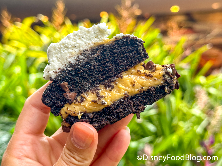The whoopie pie itself was extremely moist. As much as the DFB team loves many of Disney’s whoopie pie creations (the Carrot Cake Cookie and Red Velvet Whoopie Pie in Disney’s Hollywood studios are great) — they can sometimes fall flat. If not done right, the cake portion can be dry and the filling bland.