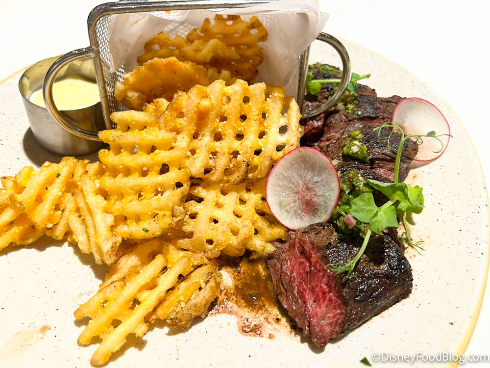 Steakhouse 71 at Disney’s Contemporary Resort is an experience in itself. If you order fries along with your meal, you’ll get the garlic-parmesan waffle fries, chimichurri, and truffle aïoli.
