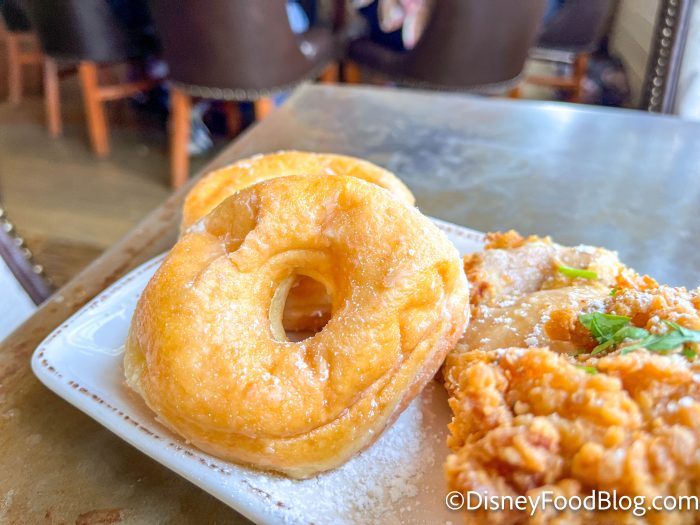 For your main entree, we strongly suggest grabbing the Fried Chicken & Doughnuts! These come with, once again, Homecomin’s incredible fried chicken, plus two yeast donuts from Everglazed (also located in Disney Springs)! Not only that, it comes with creamy mashed potatoes that can come with gravy on top.