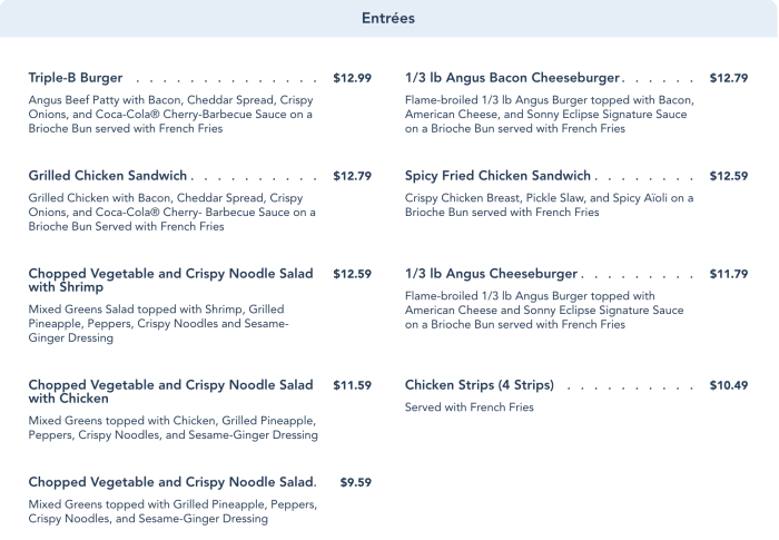 - You have picky eaters in your party. You can’t go wrong with burgers, chicken sandwiches, and chicken tenders. This is a great place to get a little something for everyone!