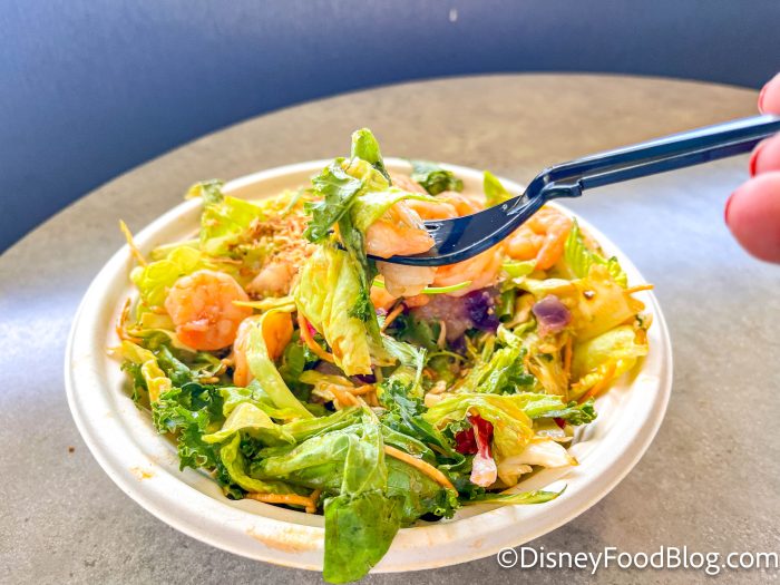 Next up is the Chopped Vegetable and Crispy Noodle Salad with Shrimp for $12.59. This is made with mixed greens salad topped with shrimp, grilled pineapple, peppers, crispy noodles, and sesame-ginger dressing. Sounds delicious, right? Well, it was!