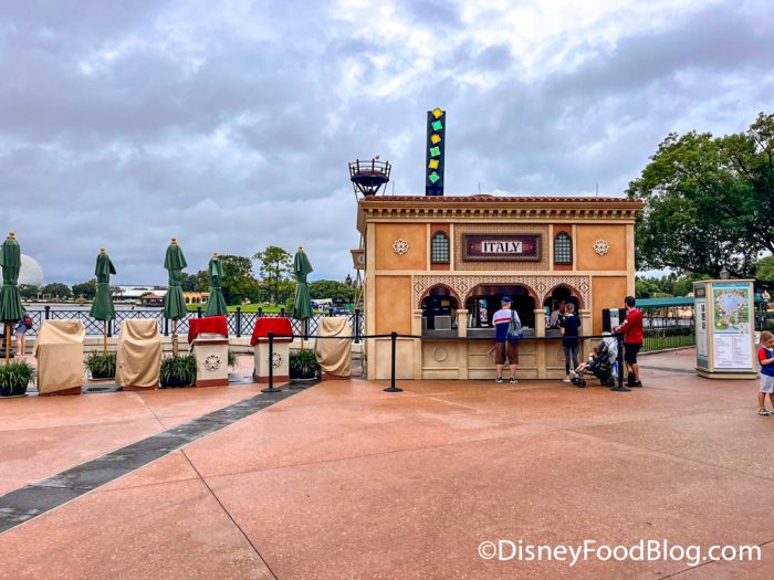 Over in EPCOT, the Outdoor Kitchens were taking orders and processing payments in the booth itself, rather than at the ordering kiosks they usually use.