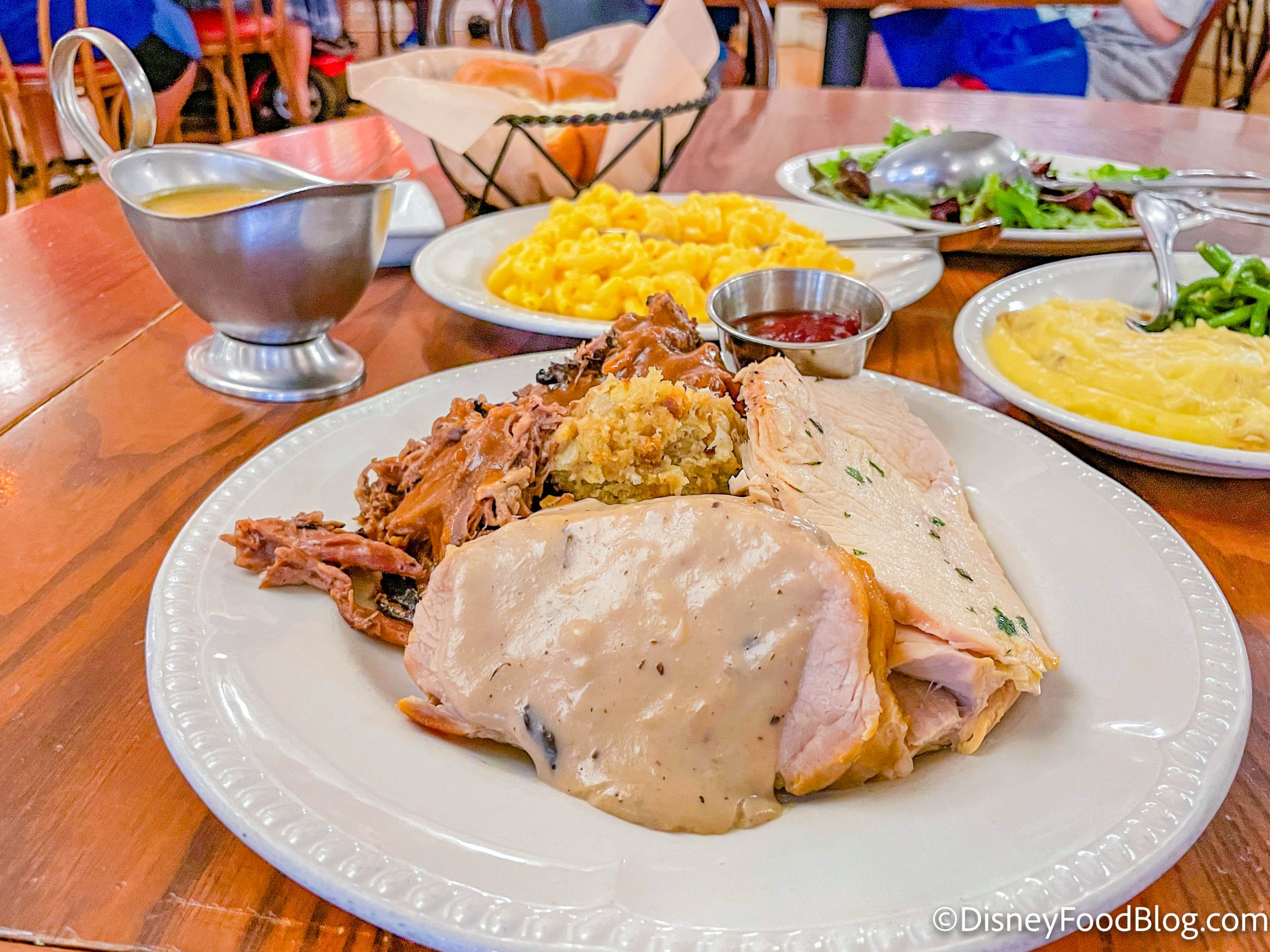 This EPCOT spot focuses on comfort food, which means you can find a lot of Thanksgiving items on this all-you-care-to-enjoy menu.