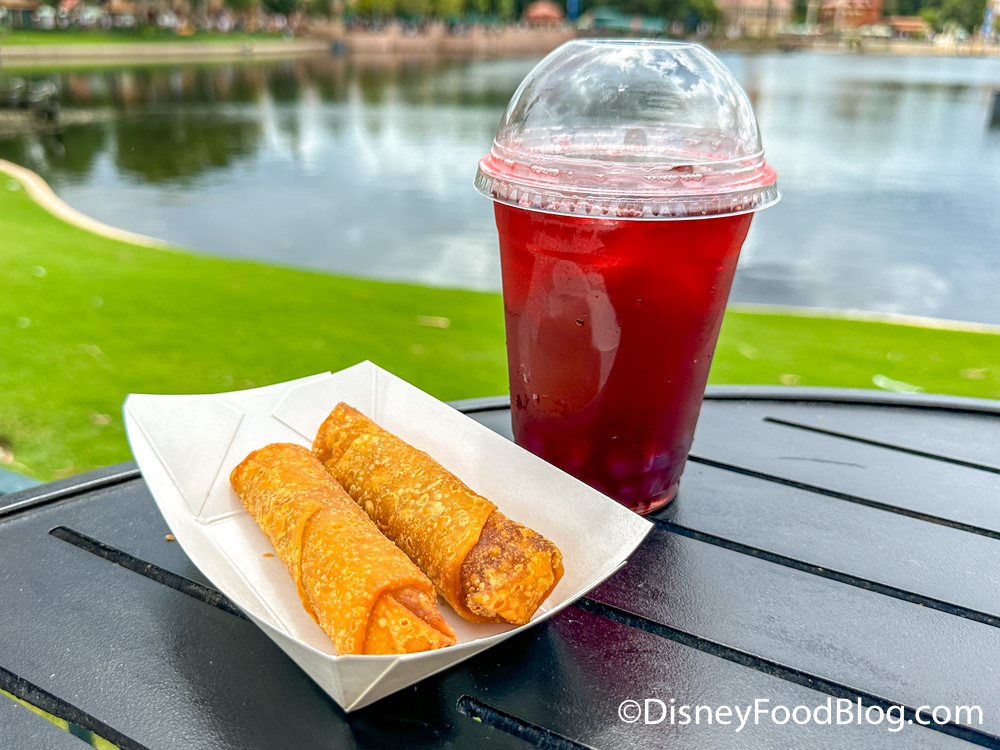 Joy of Tea in EPCOT’s China pavilion is a cute little spot right in front of World Showcase Lagoon. It serves a small but delicious variety of Chinese sips, and ONE food option. EGG ROLLS!